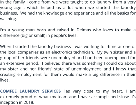 COMFEE LAUNDRY SERVICES lies very close to my heart, I am extremely proud of what my team and I have